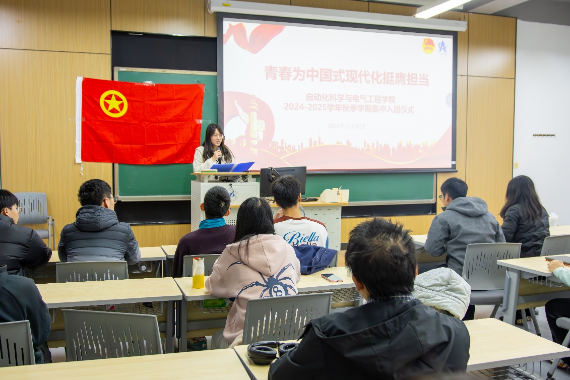 为深入学习贯彻习近平总书记五四重要寄语精神,引导广大团员青年坚定不移听党话、跟党走,11月6日下午,永利3044noc在新主楼D215举办“青春为中国式现代化挺膺担当”2024-2025学年秋季学期集中入团仪式。学院团委书记乔娇,兼职辅导员、思政教育中心指导教师吕子良,学院团委、各团支部新老团员代表30余人参加。仪式由江津同学主持。