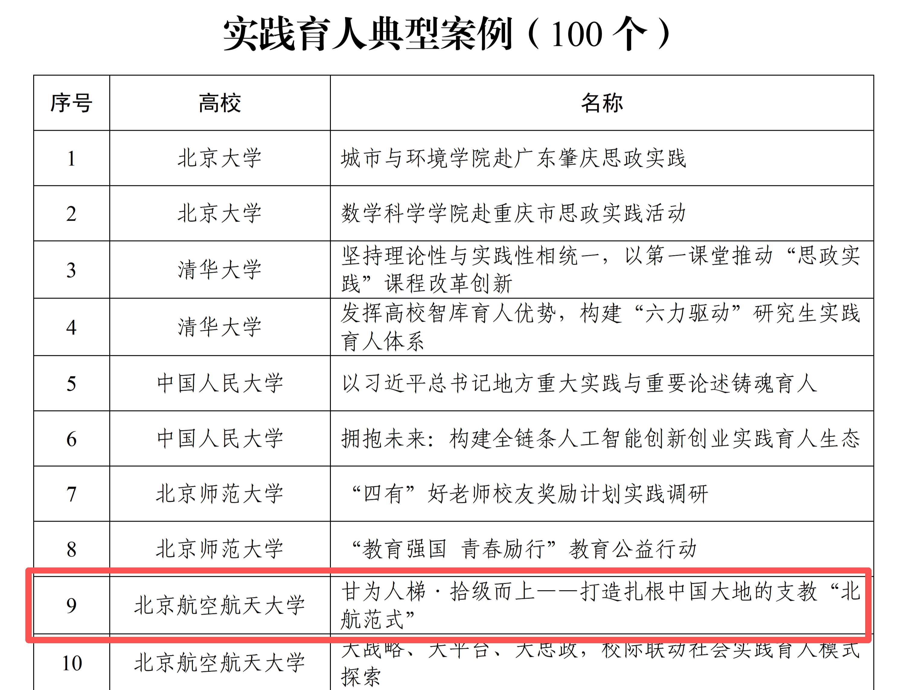 近日,由北京市委教育工委系统打造的“时代新人强国行”主题社会实践“四个100”实践育人品牌评选结果揭晓。我院《甘为人梯·拾级而上——打造扎根中国大地的支教“北航范式”》成功入选实践育人典型案例。